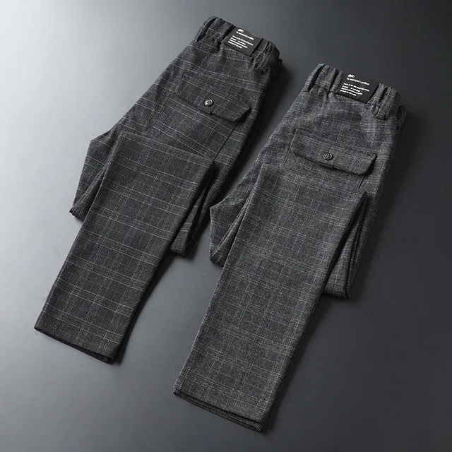 Special Offer for 2020 Autumn Spring Suit Pants Men Slim Fit Fashion Black Grey Plaid Formal Dress Pants Plus Size Business Casual Mens Trousers