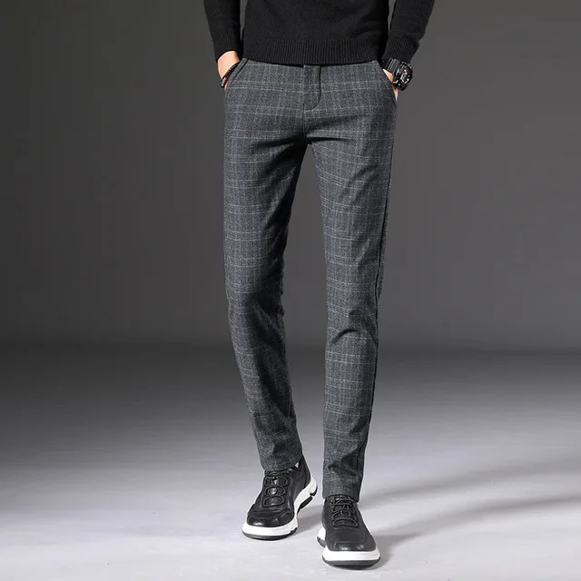 Best 2020 Autumn Spring Suit Pants Men Slim Fit Fashion Black Grey Plaid Formal Dress Pants Plus Size Business Casual Mens Trousers Free Shipping
