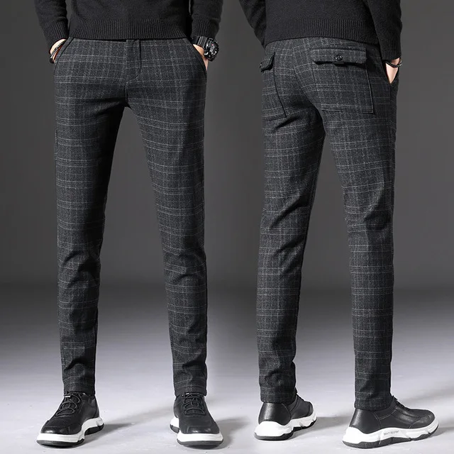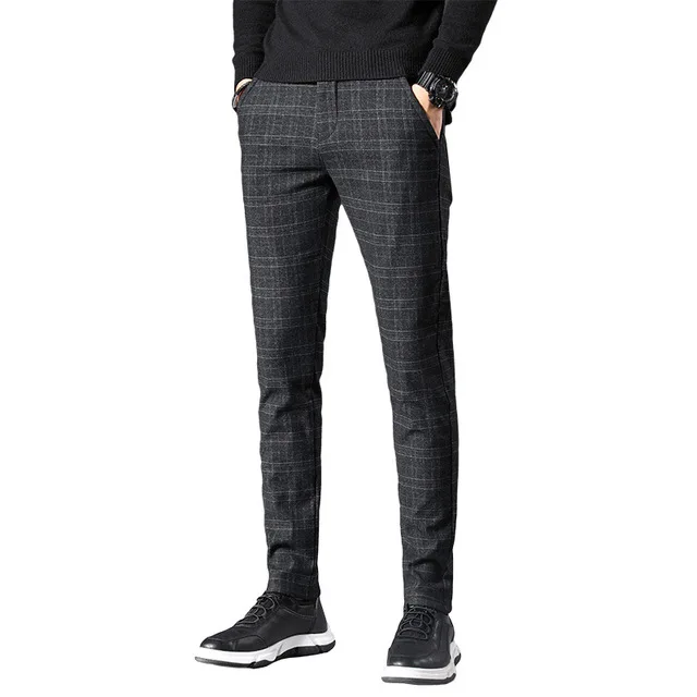 .Images for 2020 Autumn Spring Suit Pants Men Slim Fit Fashion Black Grey Plaid Formal Dress Pants Plus Size Business Casual Mens Trousers