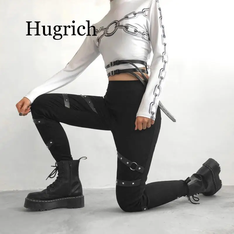 Offer Description of 2020 Women Solid Gothic Steampunk style pants Black Casual Loose Elastic Tight trousers high waist Pockets Rivet Full Pants