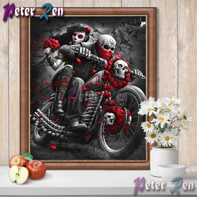 Best 5d diamond Painting Cross Stitch DIY full Square\Round Embroidery Rhinestone Motorcycle couple skull picture Halloween gift Free Shipping