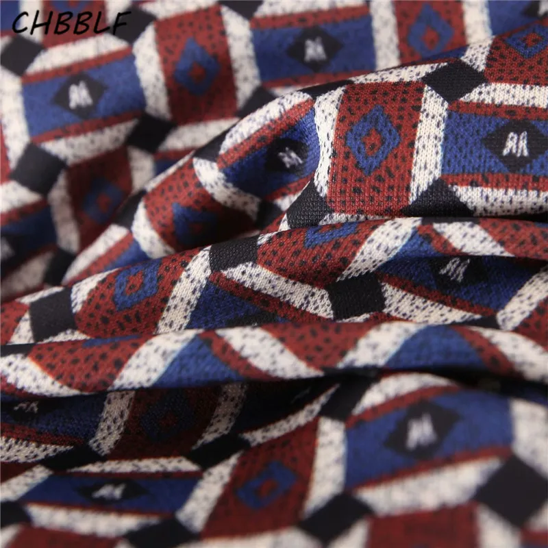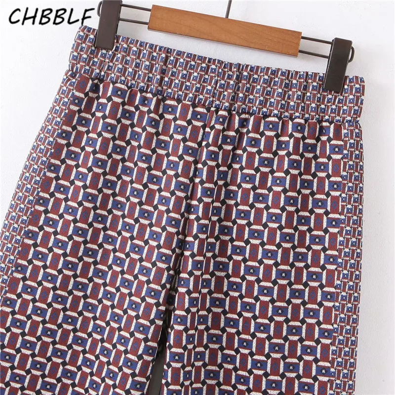 .Gallery of CHBBLF women elegant geometric pattern wide leg pants elastic waist retro female casual cozy trousers pantalones mujer XDL2520