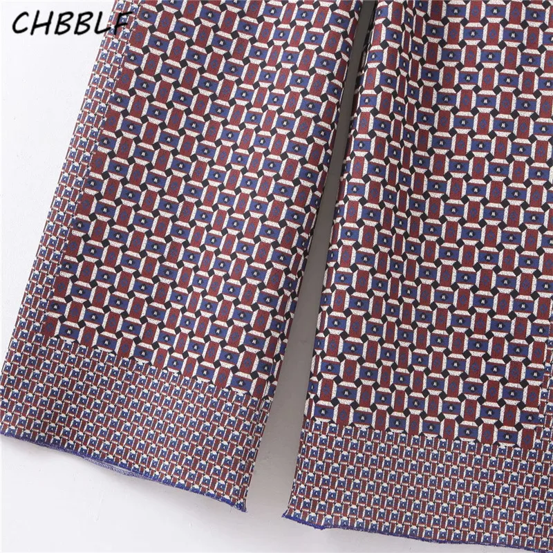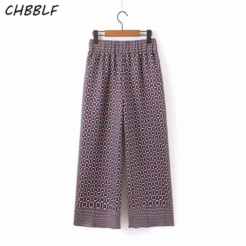 CHBBLF women elegant geometric pattern wide leg pants elastic waist retro female casual cozy trousers pantalones mujer XDL2520