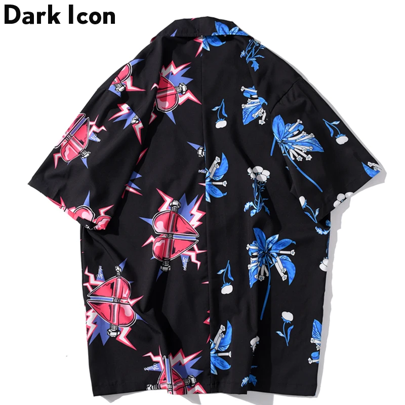 .Images for Dark Icon Front Pocket Turn-down Collar Hip Hop Shirt Men 2020 Summer New Fashion Men Women Shirts Printed Shirts for Men