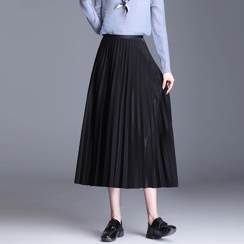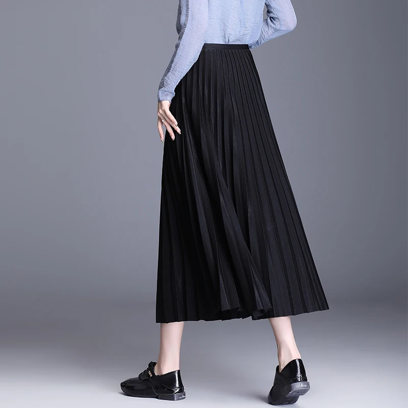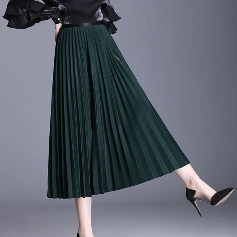 Best Korean Fashion Skirts Womens Elegant Women Pleated Skirt Woman High Waist Skirts Office Lady Solid Long Skirt Faldas Mujer Moda Free Shipping