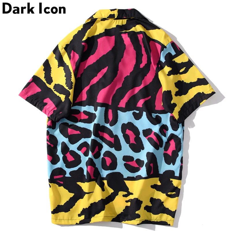 .Pictures of Leopard Printed Beach Tropical Shirts Turn-down Collar Street Hip Hop Shirts Short Sleeve Shirts For Men