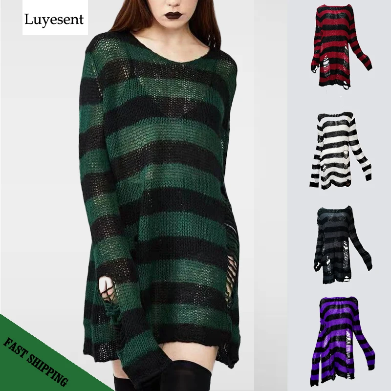 If You will buy for Sweaters, then Plus Size Punk Gothic Long Unisex Sweater Dress Women Man Striped Cool Hollow Out Hole Broken Jumper Loose Rock Thin Sweter 2020 is possible make you like