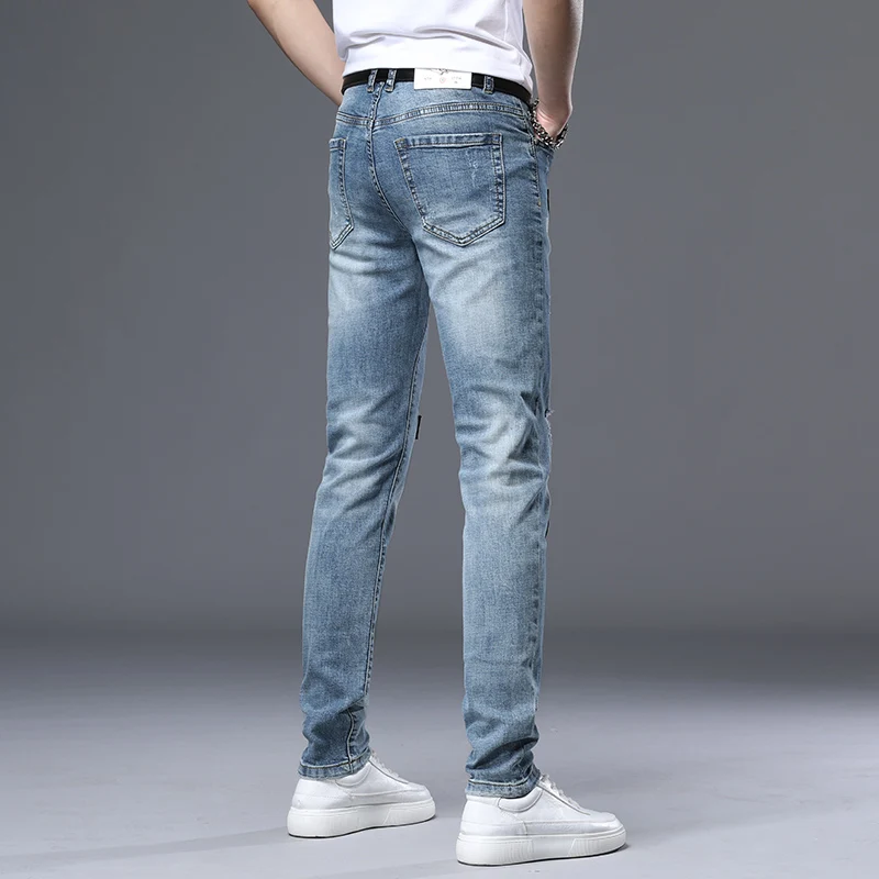 Japanese Fashion Men Jeans Light Blue Loose Fit Ripped Jeans Men Destroyed Harem Pants Vintage Designer Streetwear Hip Hop Jeans