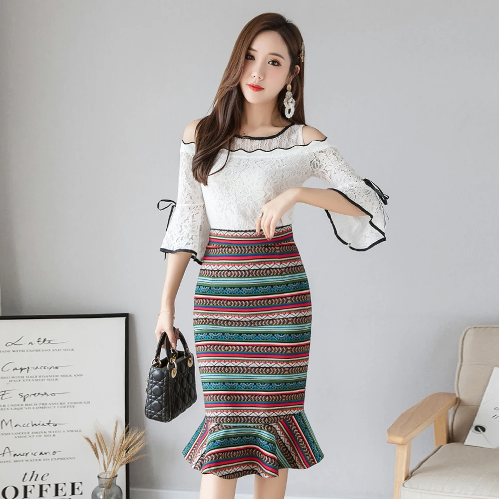 Best Printed Ruffles Elegant Midi Skirt Women 2020 New Fashion High Waist Office Ladies Stretch Mermaid Skirts Plus Size S-5XL Skirts Free Shipping