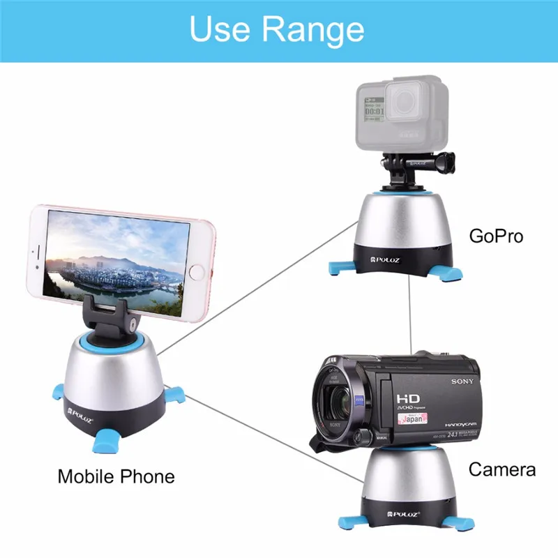 If You will buy for Camera , then PULUZ Electronic 360 Degree Rotation Panoramic Tripod Head with Remote Controller Rotating Pan Head For Smartphones, GoPro, DSLR may be make you love