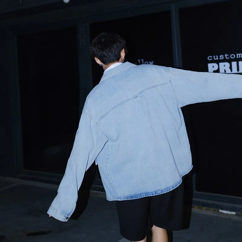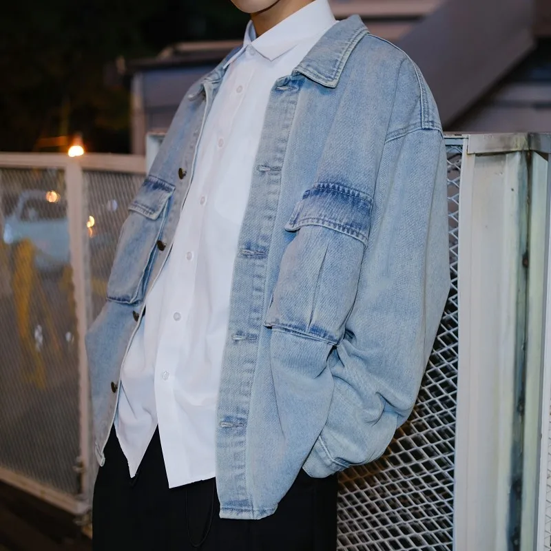 .Gallery of Retro Denim Jacket Men's Fashion Washed Loose Denim Jackets Mens Streetwear Wild Hip Hop Bomber Jacket Men Outwear M-2XL