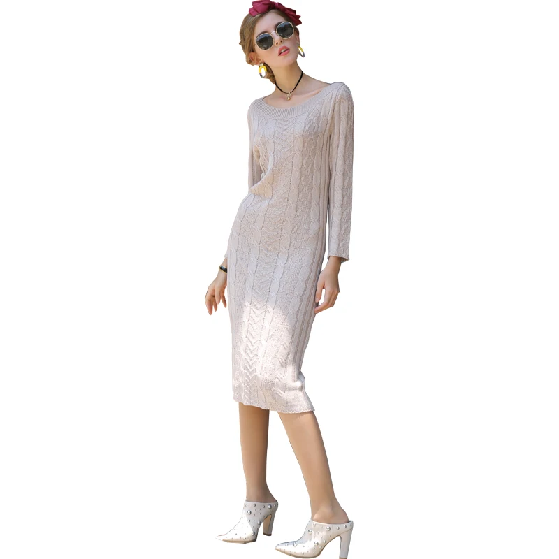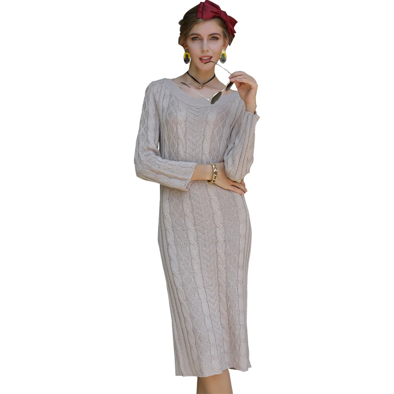 .Images for Solid color twisted base women's sweater skirt Europe and the United States word collar slim long knit dress