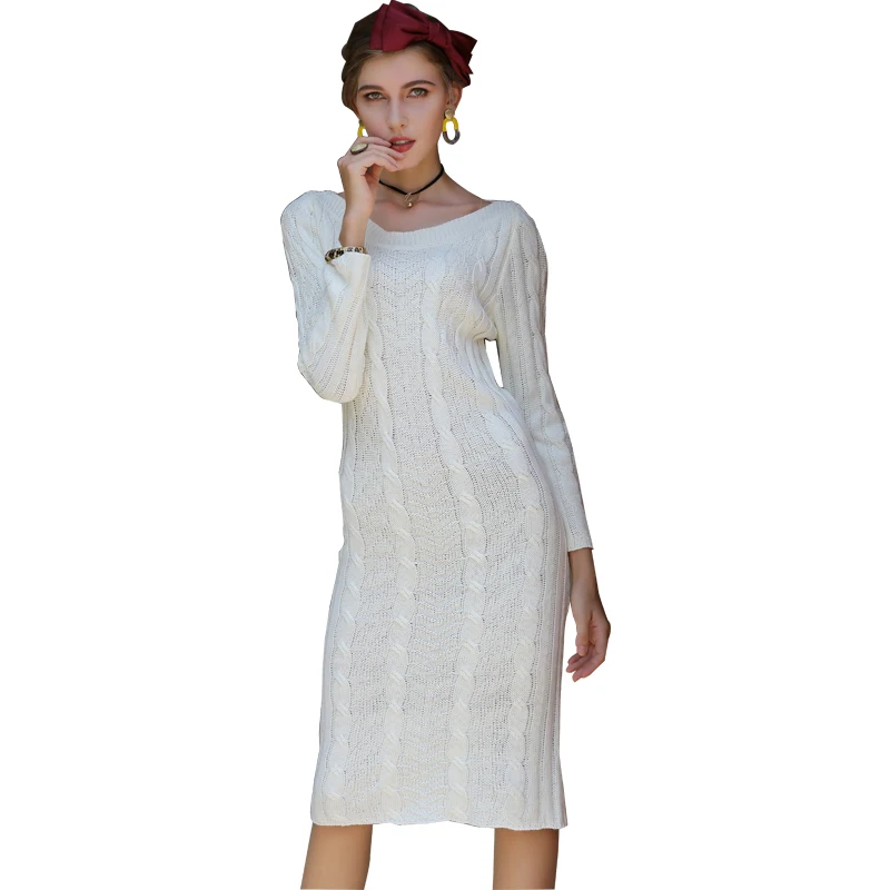 If You will buy for Sweaters, then Solid color twisted base women's sweater skirt Europe and the United States word collar slim long knit dress is possible make you like