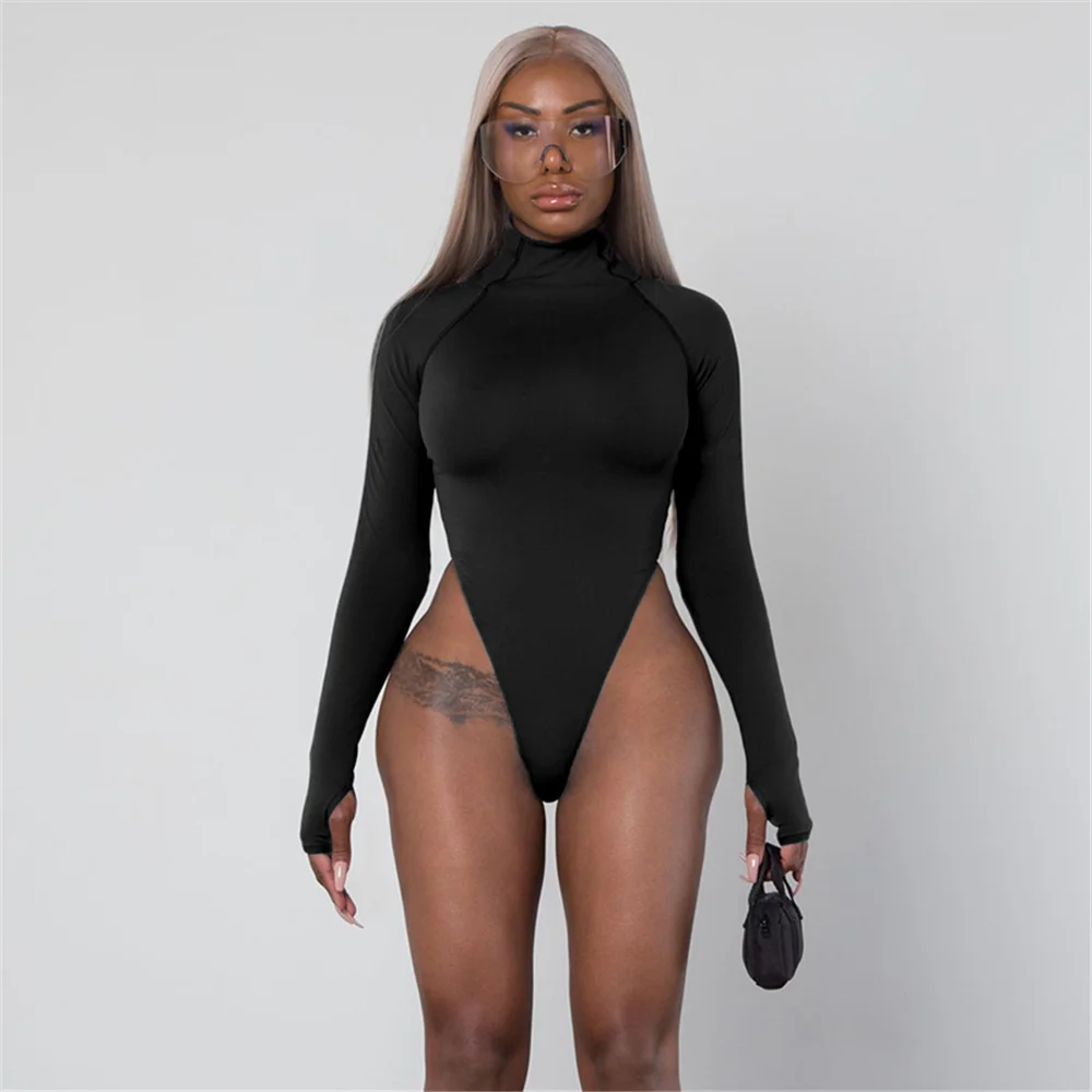 .Gallery of Three Ratels Turtleneck Long Sleeve Bodycon Bodysuit Women New Fashion Slim fit Jumpsuit Sexy Casual Body Romper 3 Colors Chosen