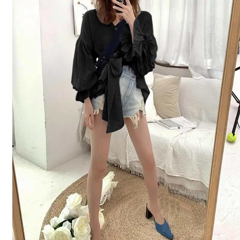 .Pictures for Celmia 2020 Fashion Women Long Lantern Sleeve Blouse Casual Shirts Elegant V neck Office Lady Top Belted Party Blusas Femininas