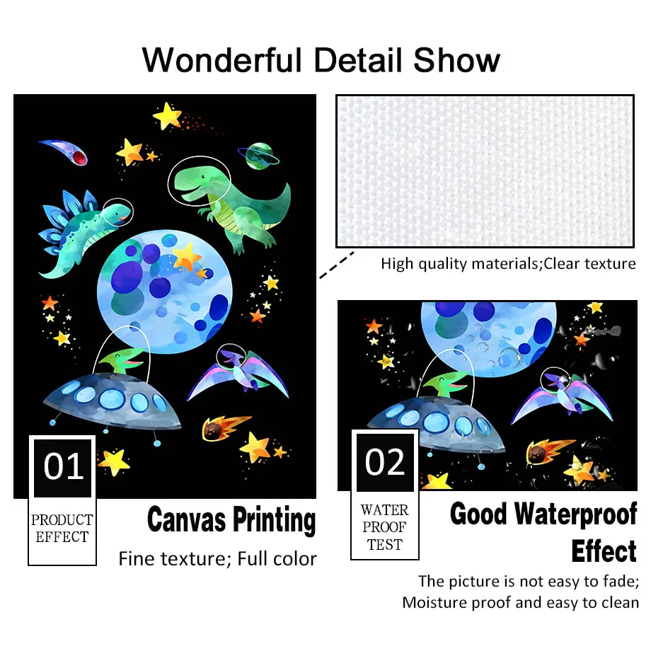 Addition Information of Dinosaur Planet Spaceship Star Moon Wall Art Canvas Painting Nordic Posters And Prints Wall Pictures Baby Kids Room Home Decor