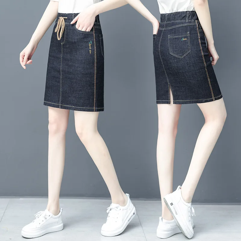Offer Description of embroidery 2020 new spring summer office lady brand female women ladies girls cotton plus size stretch waist mini Denim skirt