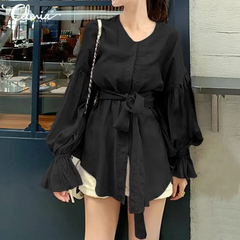 .Gallery of Fashion Women Long Sleeve Blouse Celmia 2020 Casual Belted Shirts Elegant V neck Office Lady Top Party Blusas Feminina Plus Size