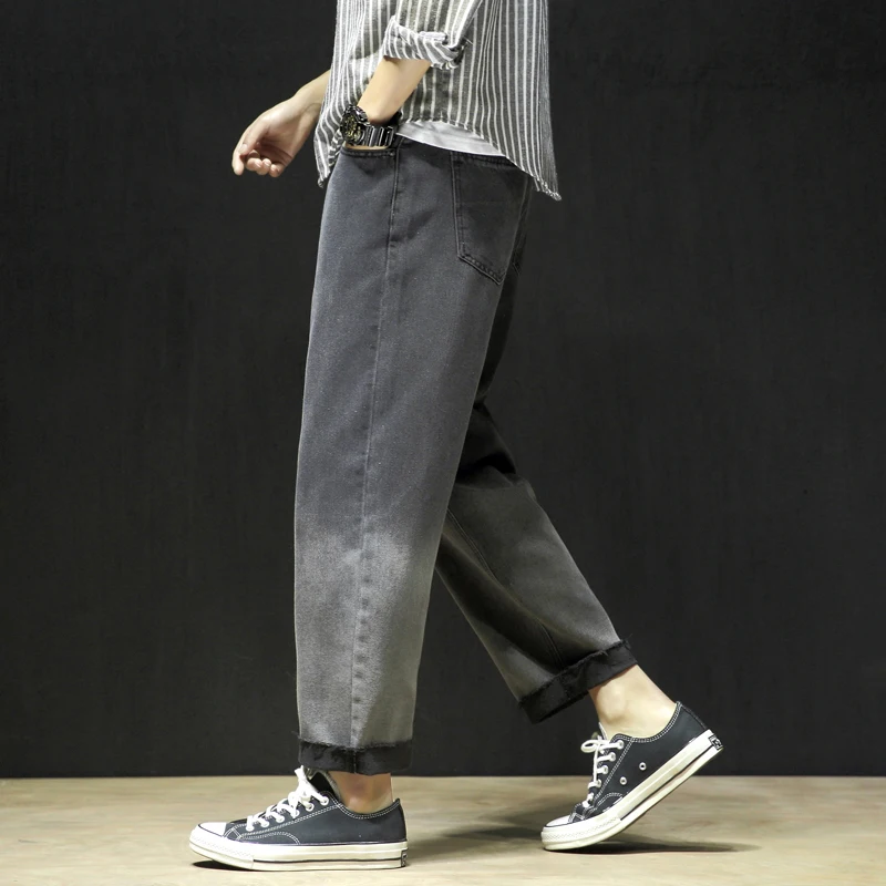 Offer Description of Gradient Retro Jeans Men's Fashion Washed Casual Straight Jean Pants Men Streetwear Wild Loose Hip Hop Denim Trousers Mens M-5XL