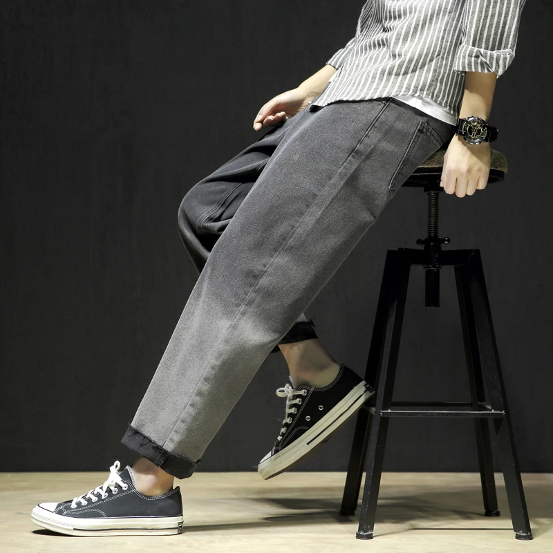 Buy Fashion Streetwear Men jeans Black Gray Color Loose Fit Stripe Designer Denim Harem Pants Japanese Vintage Hip Hop Jeans Men up to 2098-12-31, and You will Save US $30.23 or 54%, Becuase You Just Pay for 25.75 not Full Price for 55.98