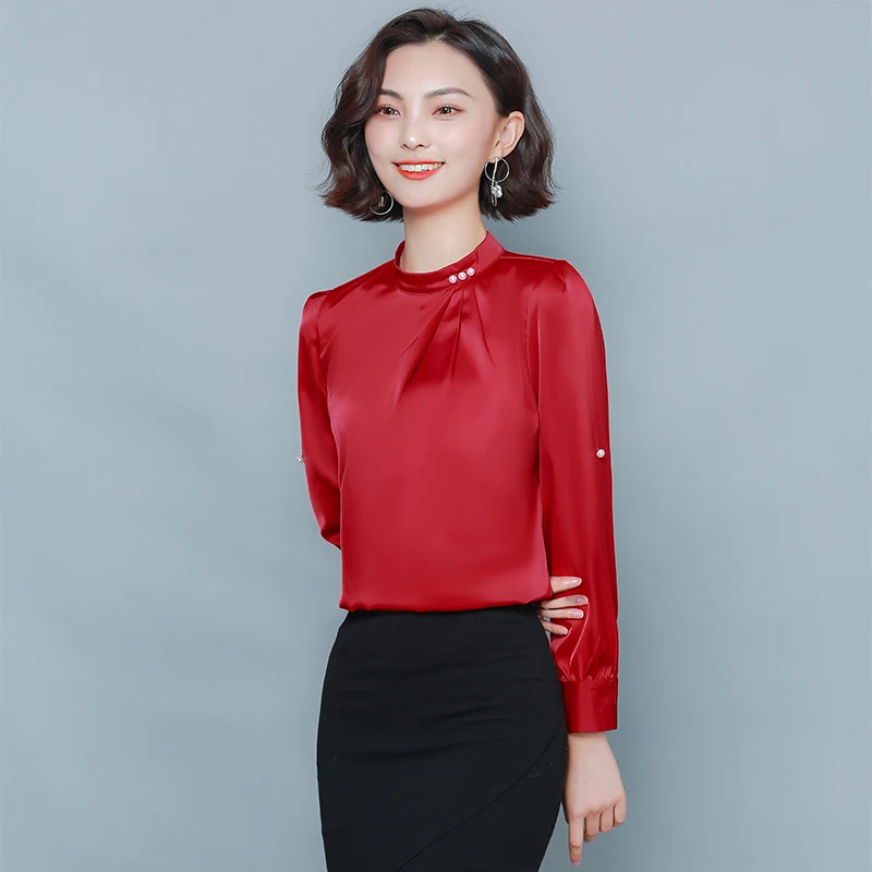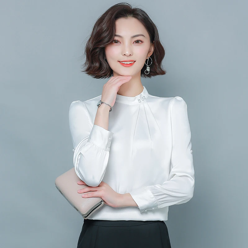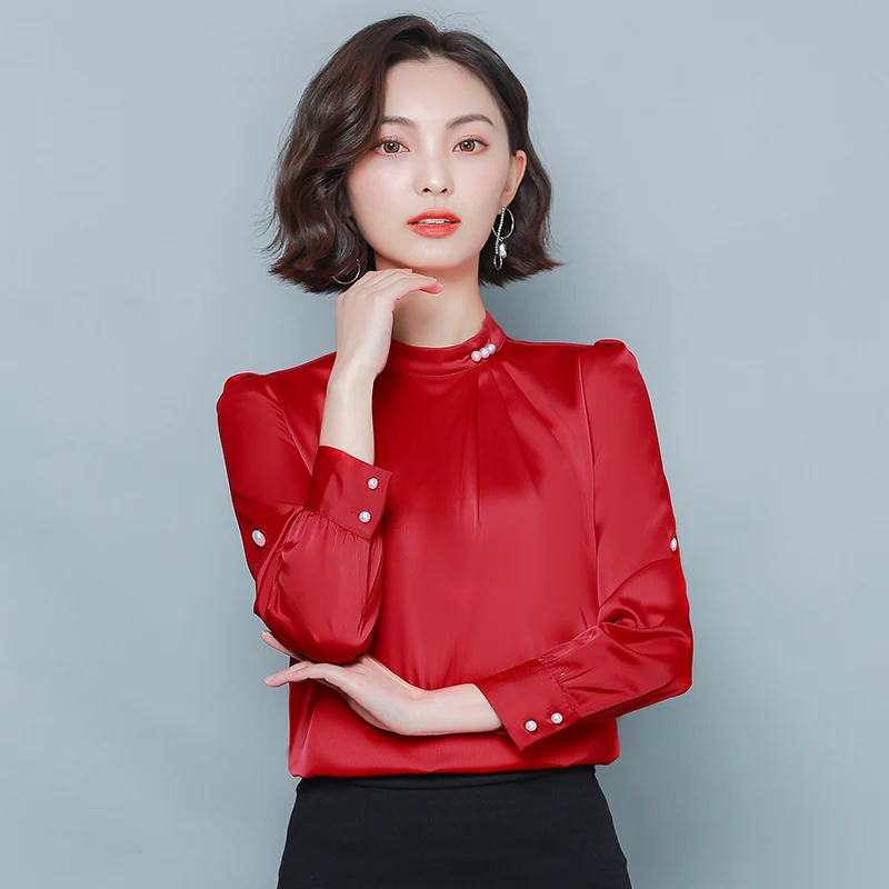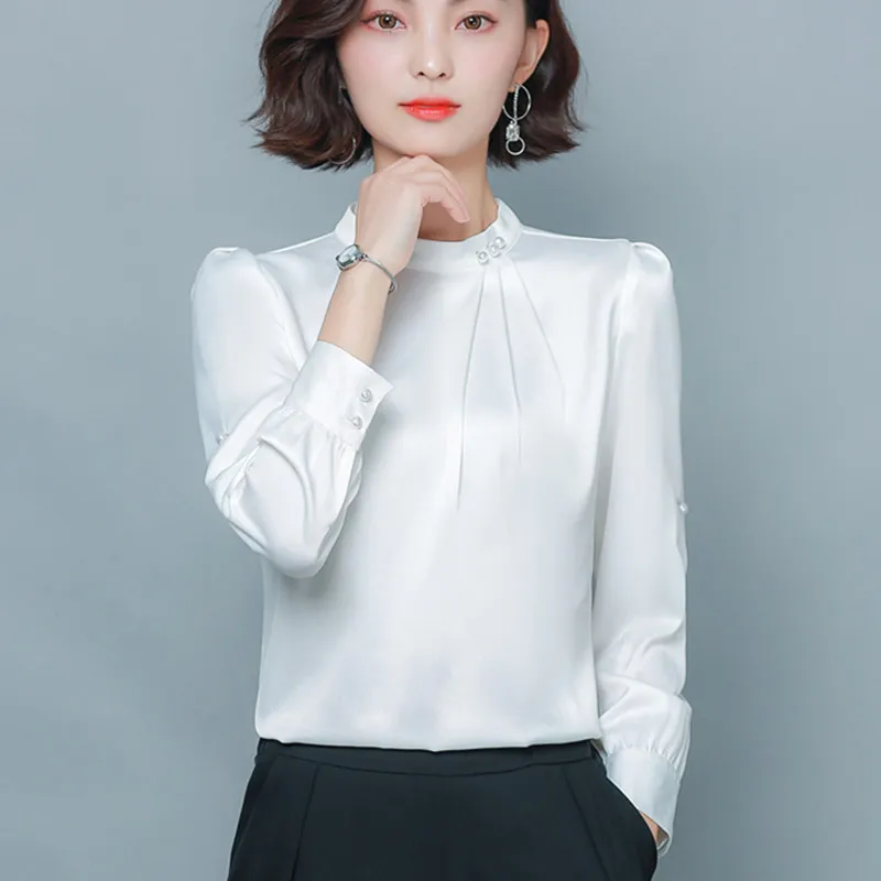 .Gallery of Korean Silk Women Blouses Elegant Women Stain Shirt Plus Size Womens Tops and Blouses Woman Long Sleeve Beading Blouses Shirts