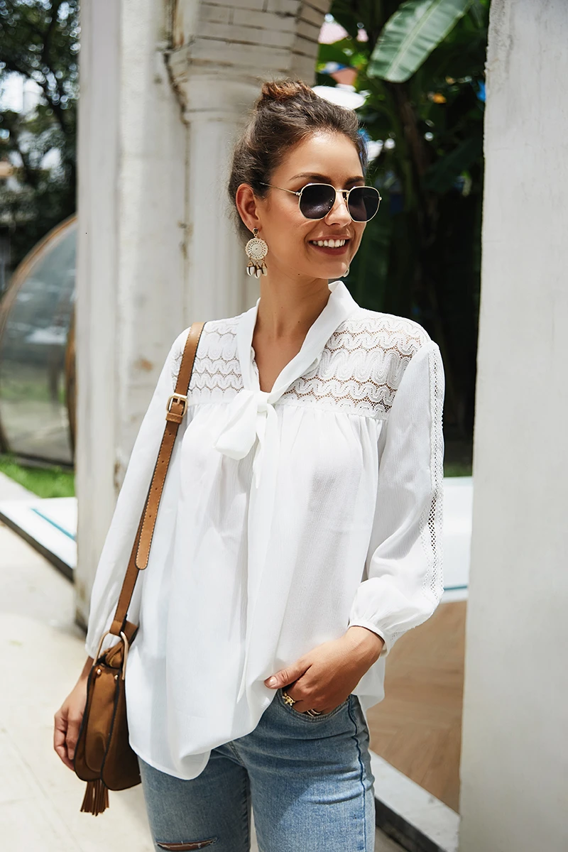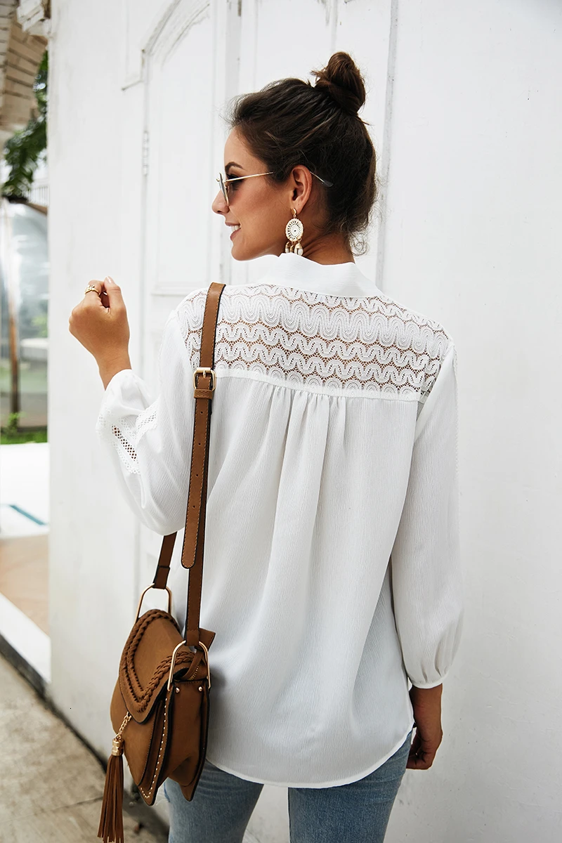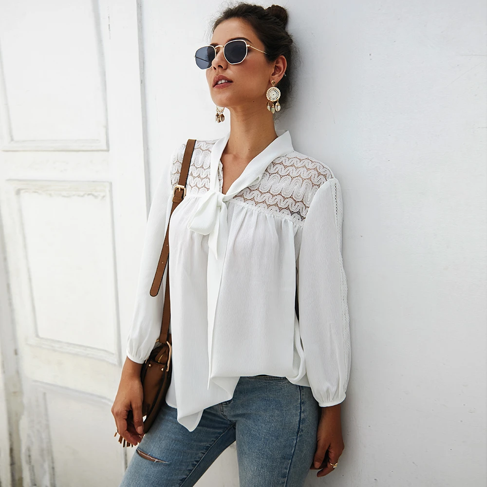 Special Price for New Fashion V Neck Long Sleeve Ladies Shirt Casual Office Lace Top Spring Summer White Blouse Women Blusas Verano Mujer 2020