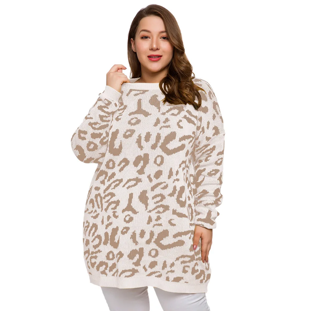 .Images of Plus Size Fashion Leopard Pullovers O Neck Long Sleeve Ladies Knitted Sweaters Autumn Winter Female Jumpers New 2020 Pull Femme