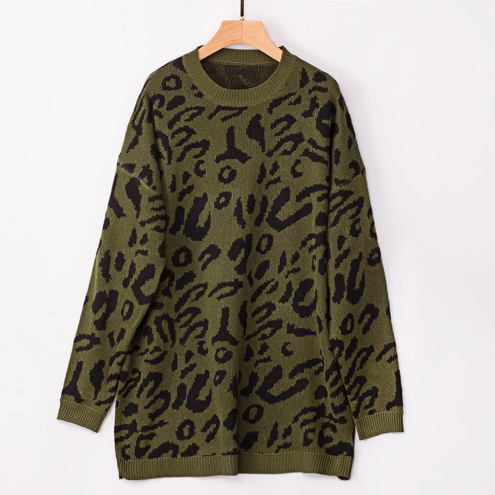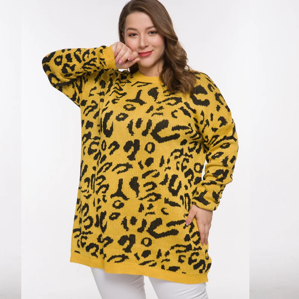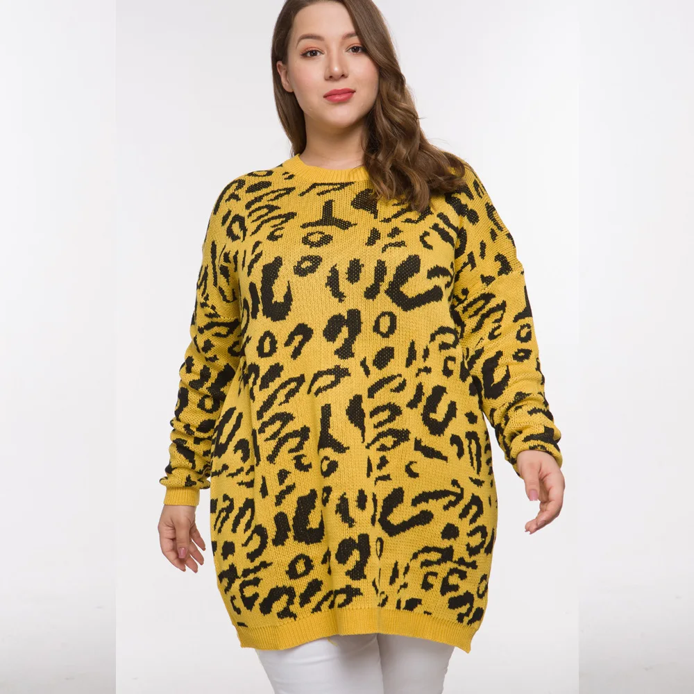 Offer Description for Plus Size Fashion Leopard Pullovers O Neck Long Sleeve Ladies Knitted Sweaters Autumn Winter Female Jumpers New 2020 Pull Femme
