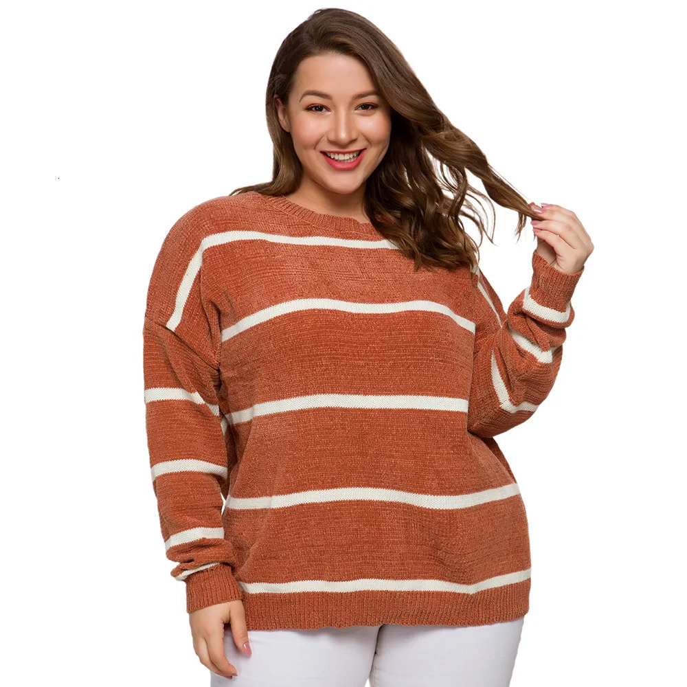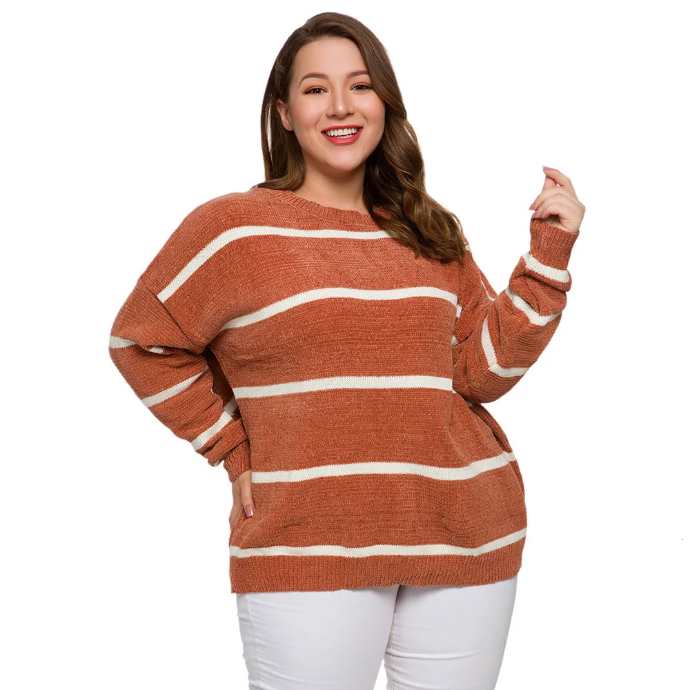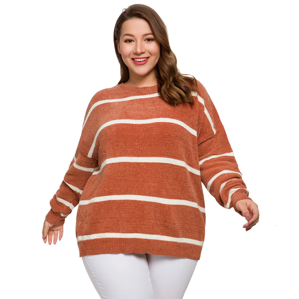 .Pictures of Plus Size Ladies Casual Knitted Pullovers Autumn Winter Warm Casual Sweater Women Striped Female Jumpers New 2020 Roupa Feminina