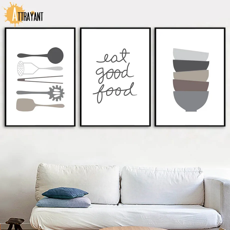 .Gallery of Tableware Bowl Quotes Wall Art Canvas Painting Nordic Posters And Prints Scandinavian Wall Pictures Kitchen Dining Room Decor