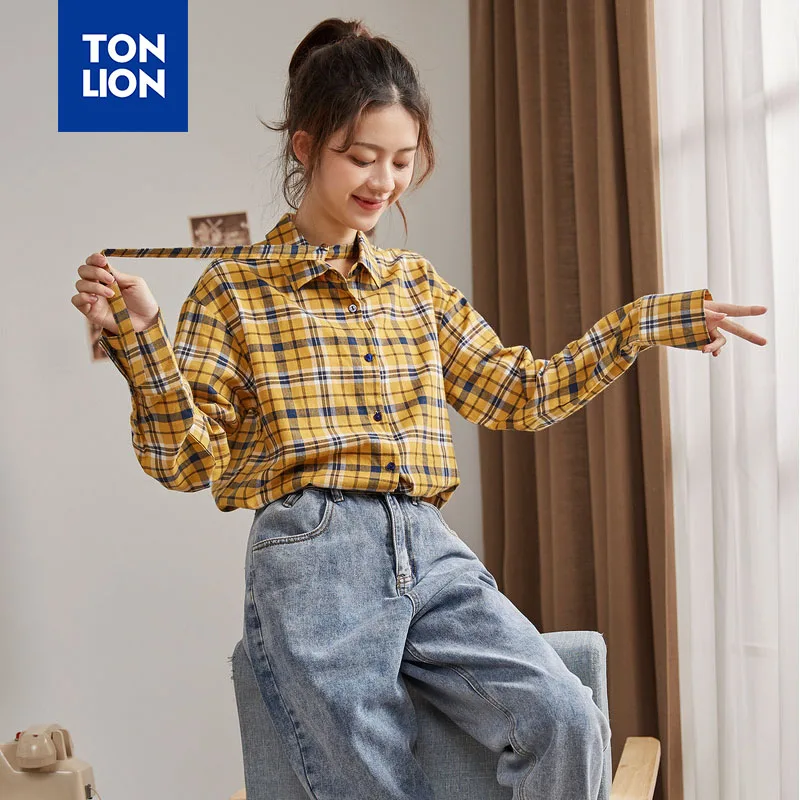 Addition Information of TONLION Yellow Purple Long Sleeve Plaid Shirt Women Full Sleeve Casual Shirts for Women Grils Fashion korean Spring Blouse 2020