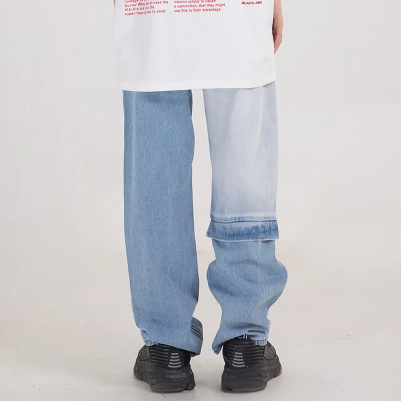 .Gallery of Aolamegs Jeans Men Color Block Patchwork Denim Pants Men Harajuku Casual Jeans High Street Baggy Comfortable Trousers Streetwear