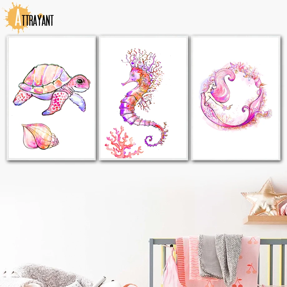 0 Response to "Best Color Sea Turtle Coral Mermaid Wall Art Canvas Painting Nordic Posters And Prints Animal Wall Pictures Kids Boy Girl Room Decor Free Shipping"