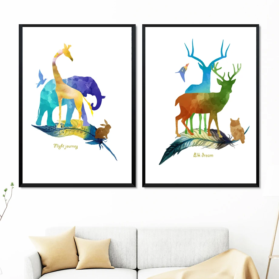 .Images for Deer Owl Rabbit Giraffe Animal Wall Art Canvas Painting Nordic Posters And Print Animal Wall Pictures For Living Room Decor