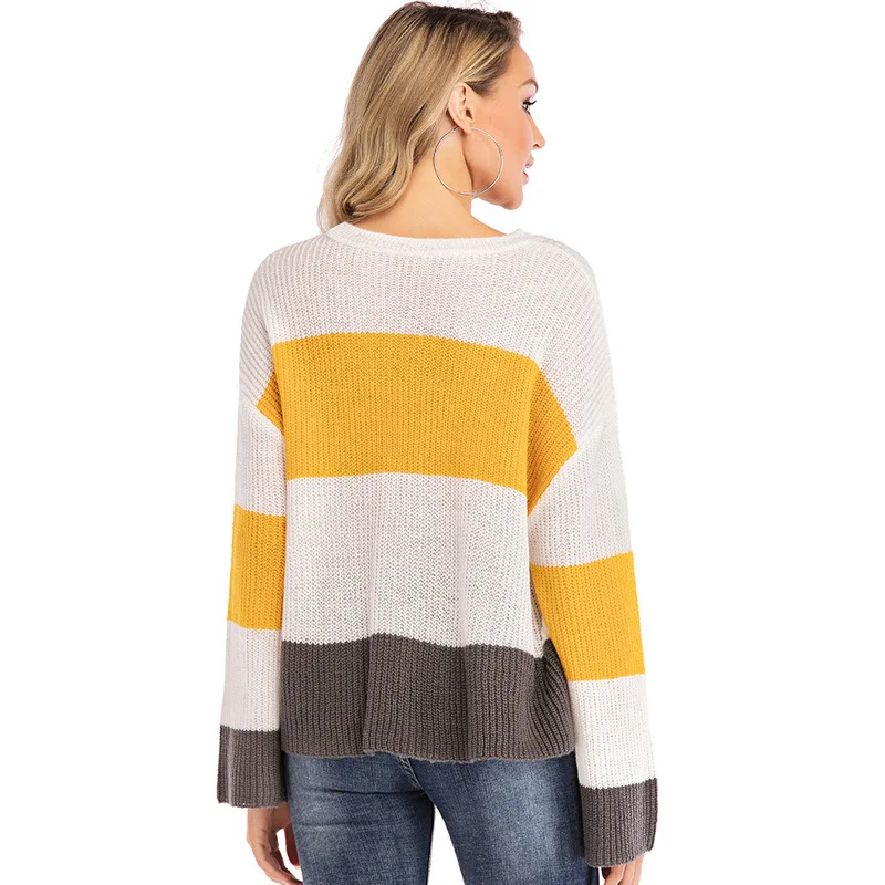 Offer Description of Fashion Casual Loose Sweaters Full Sleeve V-Neck Solid Autumn Winter Knitted Tops Korean Style Ladies Pullover Female Jumper