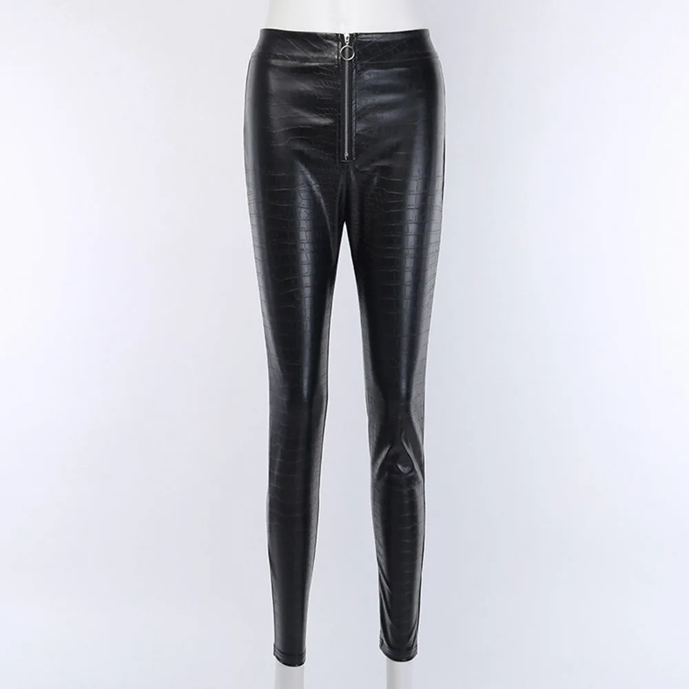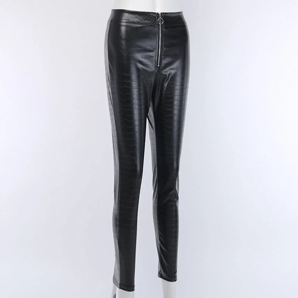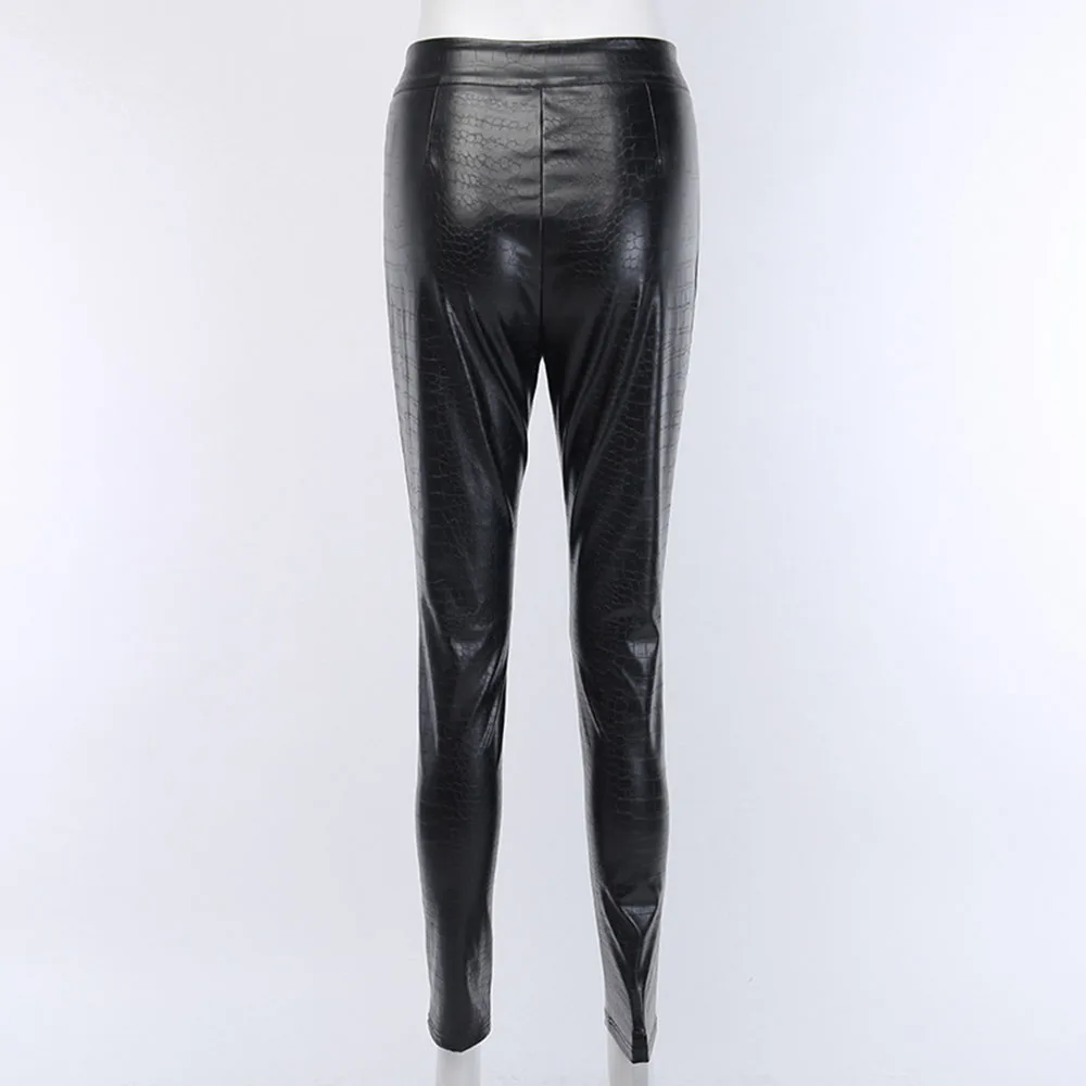.Gallery for Gothic Black Casual Pants Women PU Crocodile Pattern Zipper Slim High Quality Cropped Sexy Street Young Girl Legging Fashion