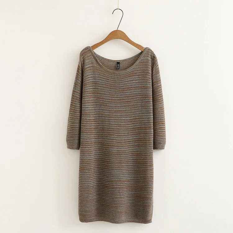 .Pictures for Hollow Out Sweaters Women Striped O-neck Casual Plus Size Long Sweaters KKFY4390