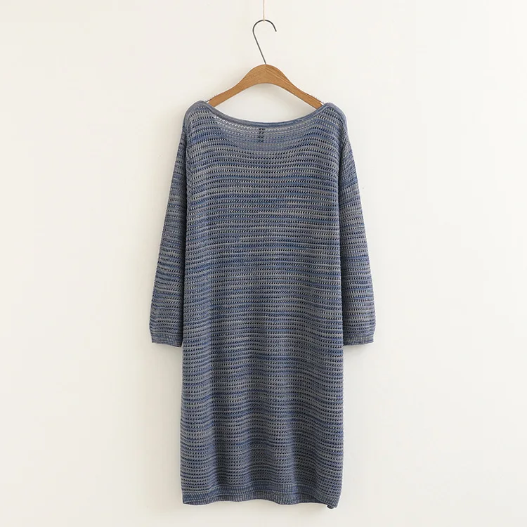 Special Price for Hollow Out Sweaters Women Striped O-neck Casual Plus Size Long Sweaters KKFY4390