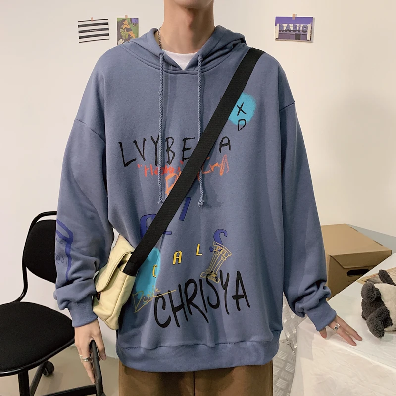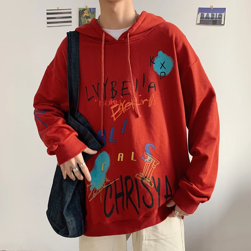 Offer Description for Hooded Hoodies Men's Fashion Print Casual Sweatshirt Men Streetwear Wild Loose Hip Hop Hoodie Mens Hoody Large Size M-5XL