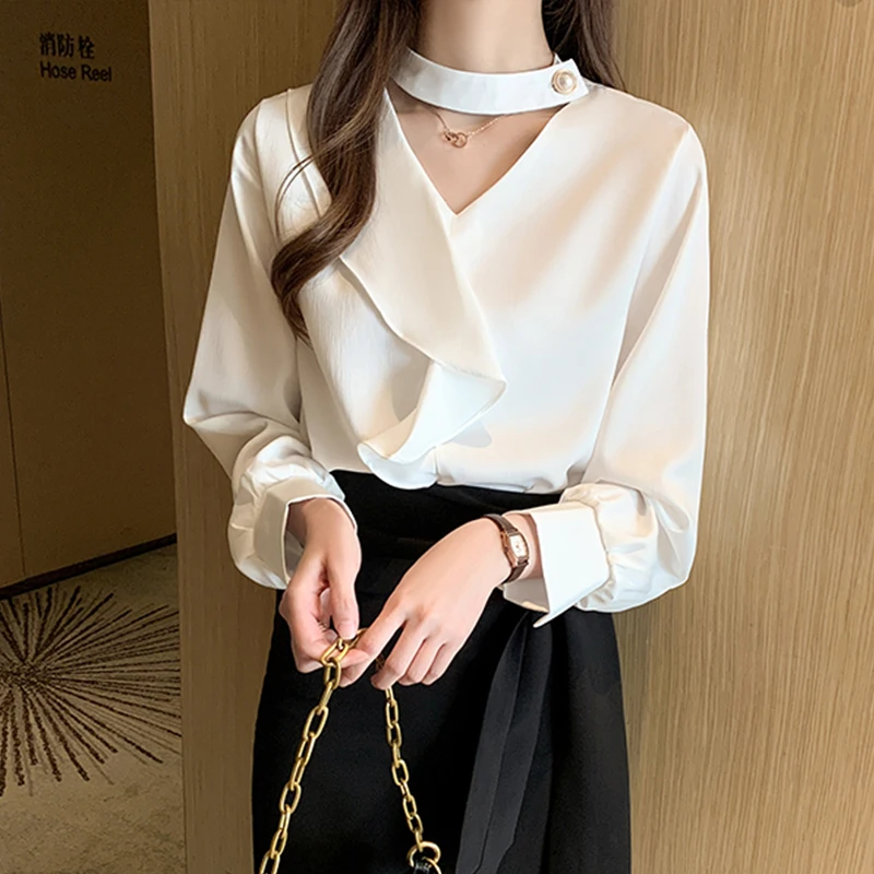 .Gallery for Korean Fashion Women Blouses Woman Silk Blouse Shirt Plus Size Womens Tops and Blouses Woman V Neck Satin Blouse Women Shirts OL