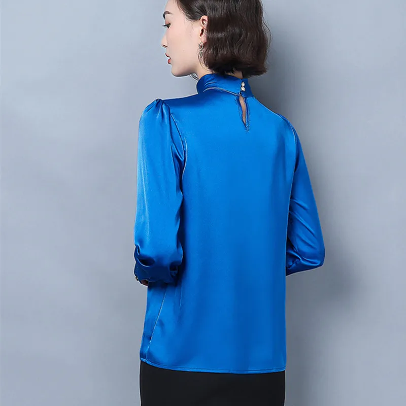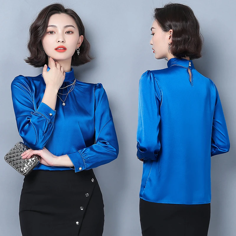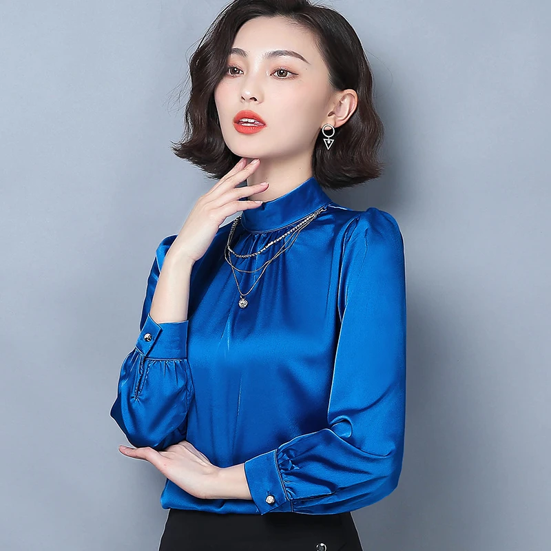 Best Korean Silk Women Shirts Elegant Women Long Sleeve Solid Blouse Shirt Plus Size Woman Satin Blouses Shirts Blusas Mujer De Moda Free Shipping