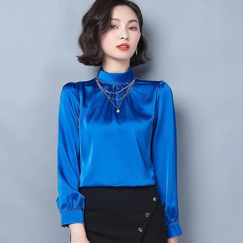 Good Chance of Korean Silk Women Shirts Elegant Women Long Sleeve Solid Blouse Shirt Plus Size Woman Satin Blouses Shirts Blusas Mujer De Moda