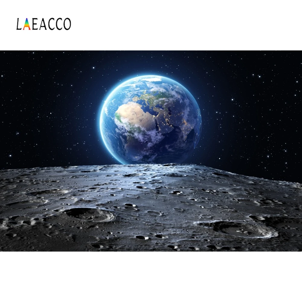 .Gallery for Laeacco Universe Moon Aerial View Earth Starry Night Photography Backgrounds Customized Photographic Backdrops For Photo Studio