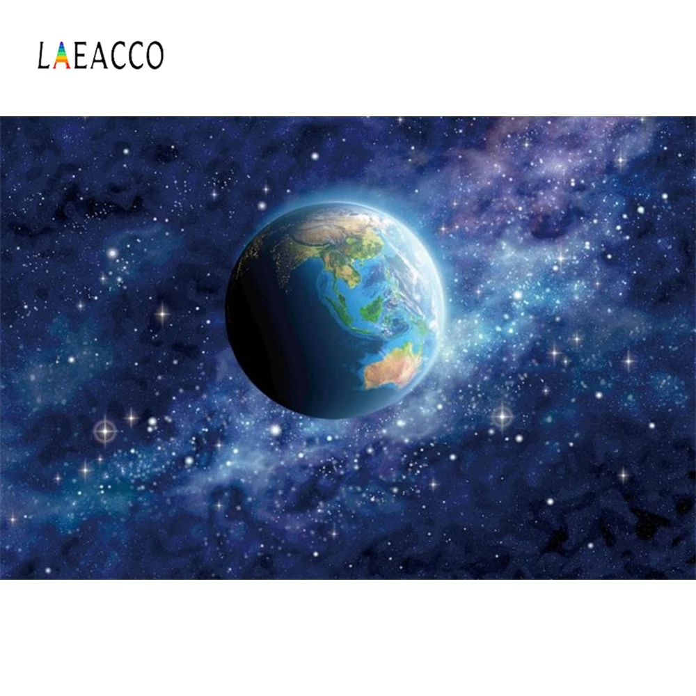 Best Laeacco Universe Moon Aerial View Earth Starry Night Photography Backgrounds Customized Photographic Backdrops For Photo Studio Free Shipping