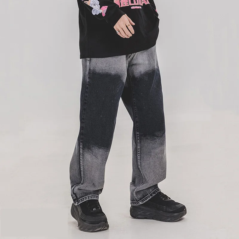 .Images of MATTSWAG Distressed Men Jeans Gradient Splice Straight Men Denim Pant Hip Hop High Streetwear Designer Jean Mens High Quality