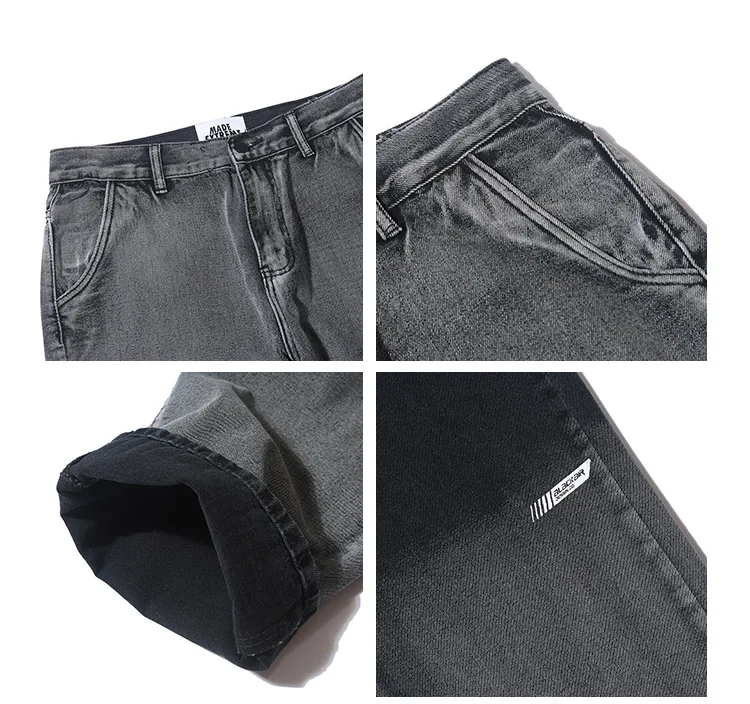 Japanese Fashion Men Jeans Green Khaki Gray Black Loose Fit Casual Cargo Pants Slack Bottom Hip Hop Jeans Men Joggers Pants