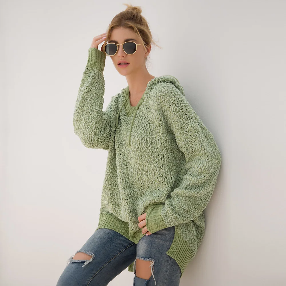 Best New Autumn Winter Hooded Women Long Sleeve Loose Damen Pullover Knitted Black Jumper Ladies Casual Sweaters 2020 Jersey Navidad Free Shipping
