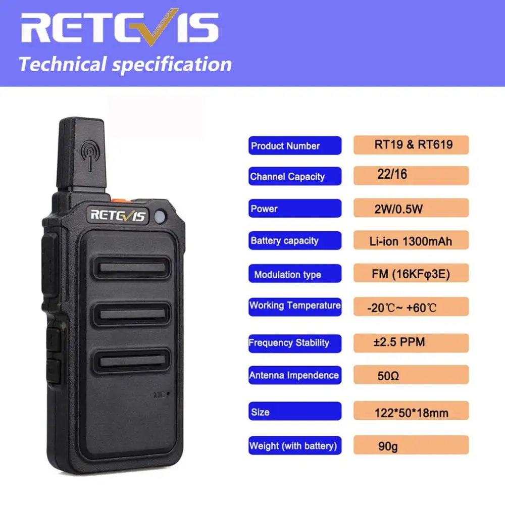 .Gallery of RETEVIS RT19/RT619 Walkie Talkie PMR Radio FRS/PMR446 2PCS VOX Scrambler Frequency Hopping Two Way Radio Transceiver Comunicador