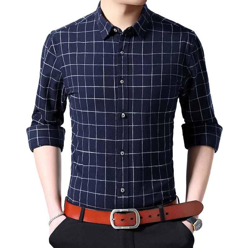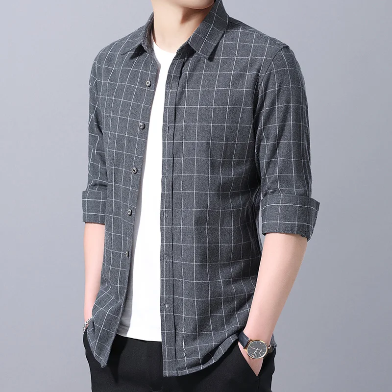.Images of TFETTERS Men Shirt Long Sleeve 2020 Spring New Casual Slim Fit Plaid Brand Shirts Turn-down Collar Regular Shirt Men Clothing