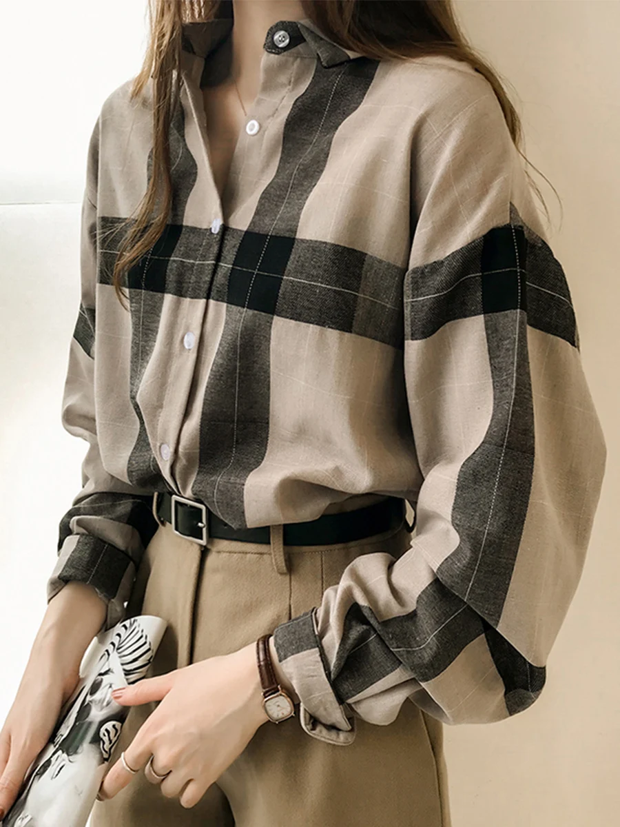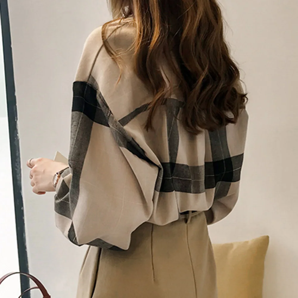 Addition Information of Women 2020 Spring Plaid Color Block Shirt Female Chic Top Autumn Causal Blouse Korean Boyfriend Streetwear Office Lady Cool